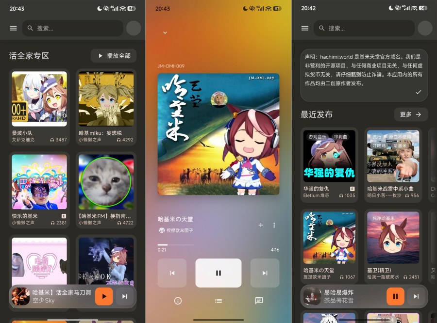 【软件版本】:1.1.1-9-g9c71350 【软件大小】:6mb 【适用平台】:安卓 【软件介绍】:基米天堂热门新歌及时收录,更新速度拉满,紧跟音乐潮流不落后!同时超全音乐资源库来袭!摇滚、流行、古典等多元曲风全覆盖,满足不同听歌喜好,无论是通勤放松、运动燃脂还是专注工作,都能找到专属BGM,快来下载解锁你的私人音乐空间! 1、内置评论区、弹幕及话题功能,方便用户交流创作心得、分享发现,形成紧密的爱好者圈子。
